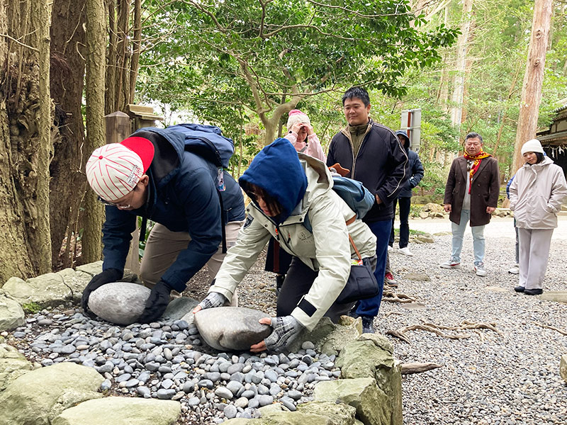 火の玉石(重軽の石)を持ち上げ、持ち上げた時の重量感で吉凶を占う石占(いしうら)も皆様お楽しみいただきました。